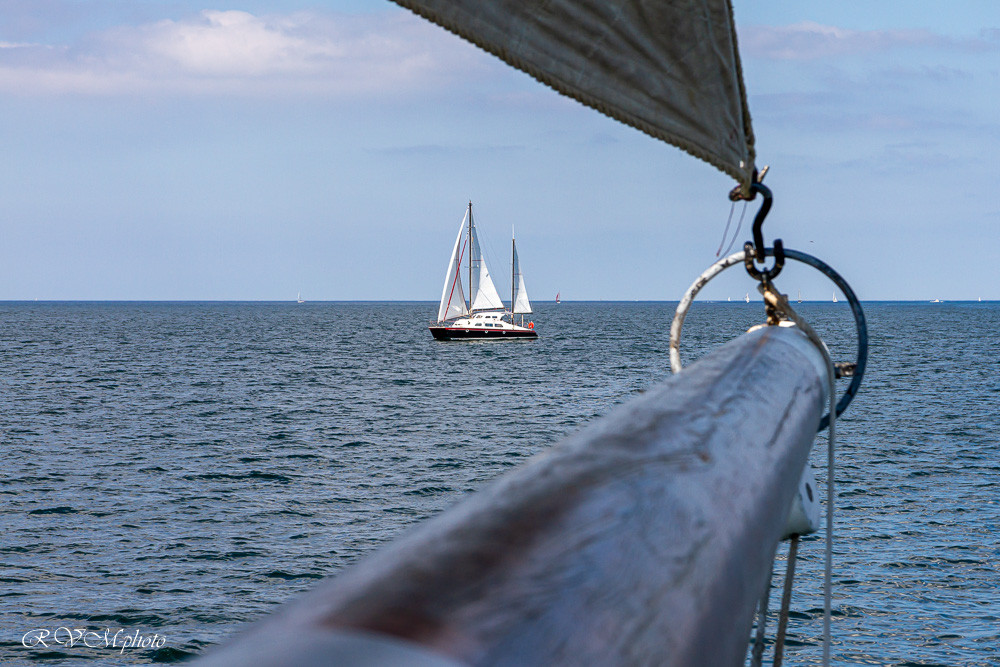 Excellente journée à bord du thonier Biche, dernier thonier-dundee de l'ile de Groix, beau temps, belle mer, dans la douceur de la propulsion ancienne à la voile dans les courreaux de l'ile de Groix.