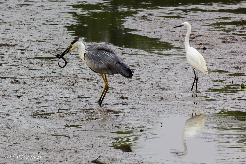 Héron cendré et aigrette garzette